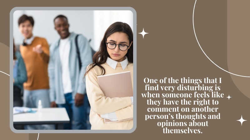 One of the things that I find very disturbing is when someone feels like they have the right to comment on another person’s thoughts and opinions about themselves.