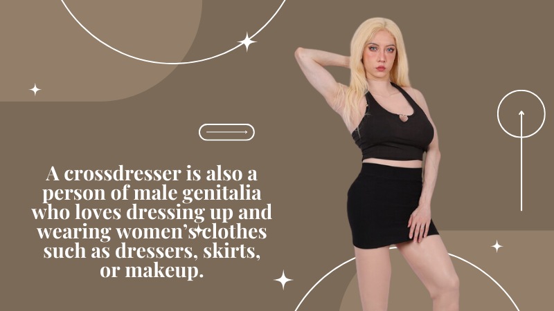 A crossdresser is also a person of male genitalia who loves dressing up and wearing women’s clothes such as dressers, skirts, or makeup.