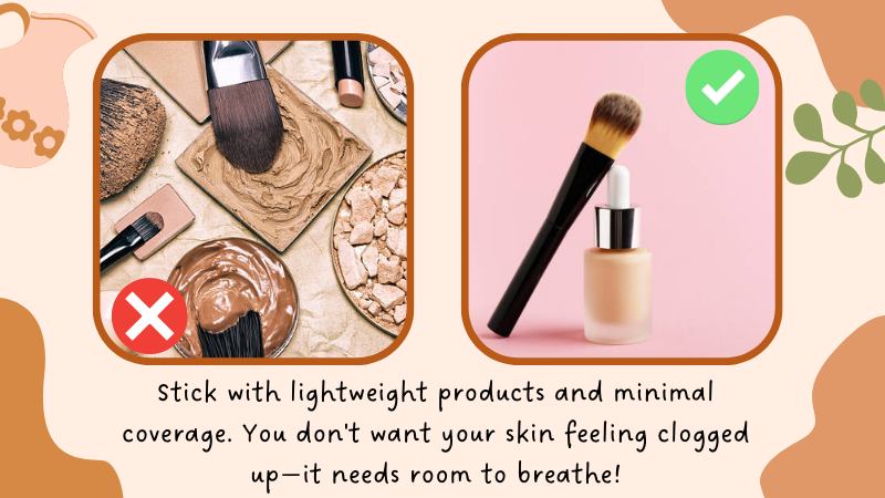 Go easy on the make-up! Stick with lightweight products and minimal coverage. You don’t want your skin feeling clogged up—it needs room to breathe! Additionally, skip heavy foundations and opt for tinted moisturizers instead. This will not only keep your skin hydrated but will also give you a fresh feminine glow throughout the day! Another great tip is to invest in good products—the more expensive they are doesn’t necessarily mean they’re better. But if you have sensitive skin, make sure to test them all out first.