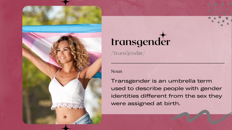 Transgender refers to a person’s gender identity. It’s an umbrella term used to describe people with gender identities different from the sex they were assigned at birth.