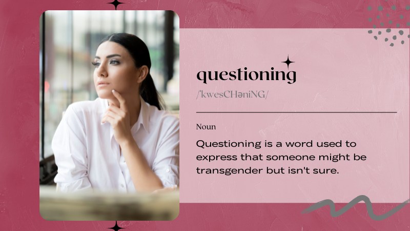 Questioning is a word used to express that someone might be transgender but isn’t sure.