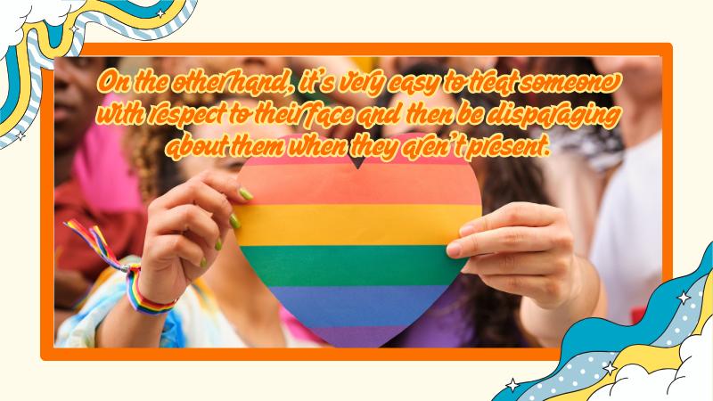 On the other hand, it’s very easy to treat someone with respect to their face and then be disparaging about them when they aren’t present. Essentially, we should strive to be polite and respectful of people’s linguistic boundaries in order not to overwhelm them, while at the same time striving to be respectful of people’s identities.