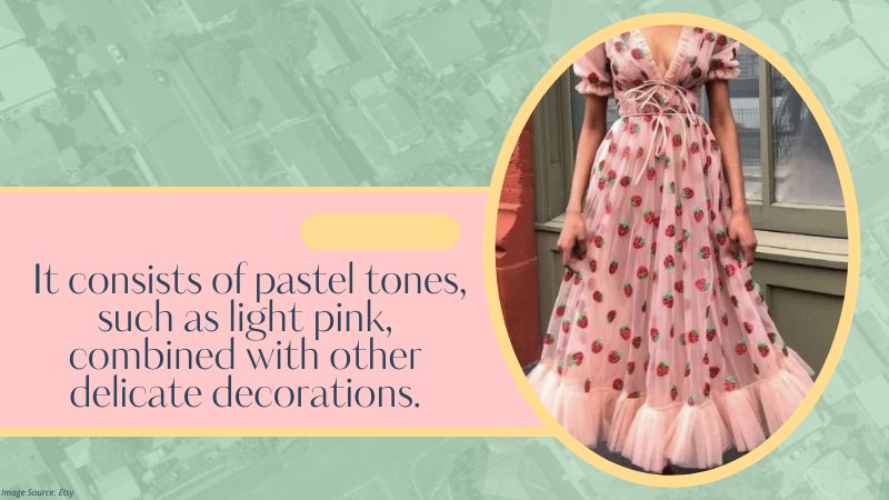 It consists of pastel tones, such as red and light pink, combined with red and other delicate decorations.