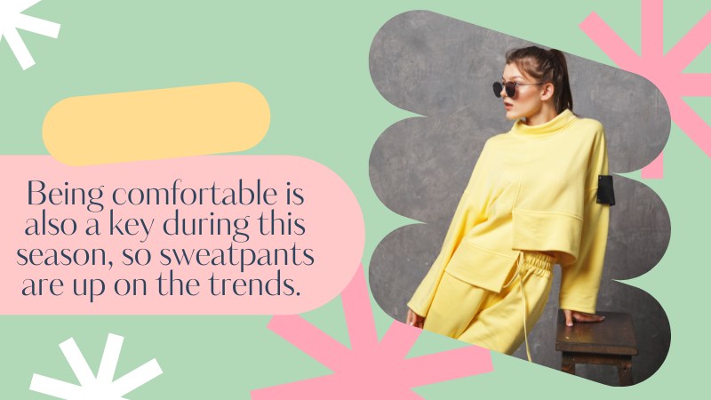 Being comfortable is also a key during this season, so sweatpants are up on the trends.