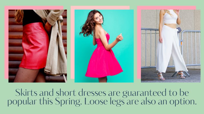 Now, in terms of outfits, skirts and short dresses are guaranteed to be popular this Spring.