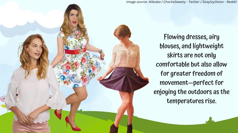As winter’s heavy layers are shed, crossdressers can embrace the lighter, more breathable materials that spring fashion offers. Flowing dresses, airy blouses, and lightweight skirts are not only comfortable but also allow for greater freedom of movement—perfect for enjoying the outdoors as the temperatures rise. Patterns, too, play a significant role in spring fashion. Floral prints in particular symbolize the blossoming of new life and can bring a touch of nature’s beauty to any ensemble. Also, accessories should not be overlooked when updating a spring wardrobe.