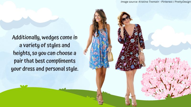 Pairing your floral dress with wedges is also a great choice for the spring season. Wedges provide a comfortable and stable base for walking on uneven terrain, and they can help elongate your legs and create a more flattering silhouette. Additionally, wedges come in various styles and heights. You can choose a pair that best complements your dress and personal style. A floral dress with wedges is a perfect combination for the spring season. It’s comfortable, and stylish, and captures the essence of the season in a fun and fashionable way. So go ahead and embrace your inner fashionista this spring!