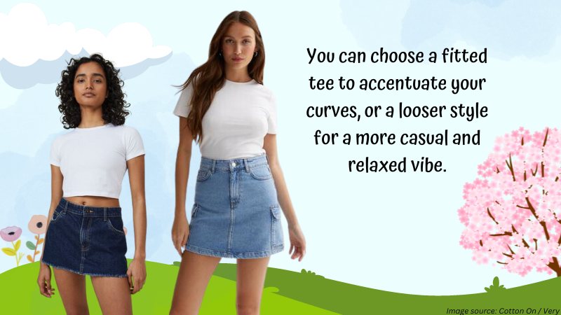 It’s simple and timeless and adds a touch of freshness and simplicity to the overall look. You can choose a fitted tee to accentuate your curves, or a looser style for a more casual and relaxed vibe. This outfit is also perfect for a day out with friends or running errands around town. It’s comfortable and practical, yet still stylish and fashionable. You can dress it up with a pair of heels and some statement jewelry, or keep it simple with a pair of sneakers and minimal accessories. It’s a versatile and comfortable outfit that can be easily customized to suit your personal style and body type.