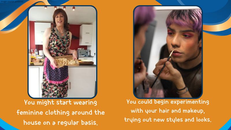 1) You might start wearing feminine clothing around the house on a regular basis. This could mean anything from wearing a skirt or dress while doing chores to putting on some makeup before going out to run errands.