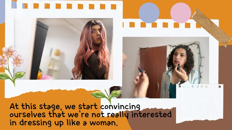 At this stage, we start convincing ourselves that we’re not really interested in dressing up like a woman. Maybe we’ve been caught wearing women’s clothing, or we’ve been thinking about it more and more, and it’s making us feel uncomfortable.