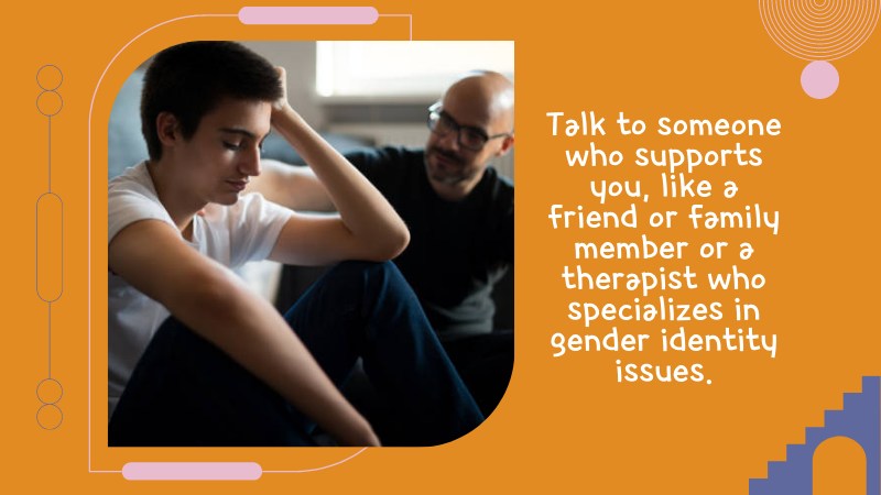 Talk to someone who supports you, like a friend or family member or a therapist who specializes in gender identity issues. They can help you sort through your feelings and figure out what’s best for you.