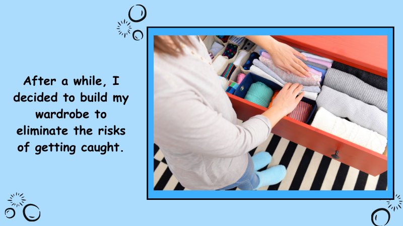 After a while, I decided to build my wardrobe to eliminate the risks of getting caught.