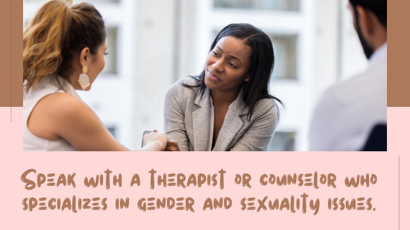 For further assistance and guidance on this, it might be helpful to speak with a therapist or counselor who specializes in gender and sexuality issues.