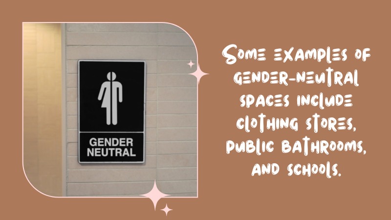 Some examples of gender-neutral spaces include clothing stores, public bathrooms, and schools.
