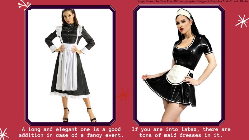 But with so many different cute maid dresses I prefer to have different models. A long and elegant one is a good addition in case of a fancy event. If you are into latex, there are tons of maid dresses in it, and are so sexy!