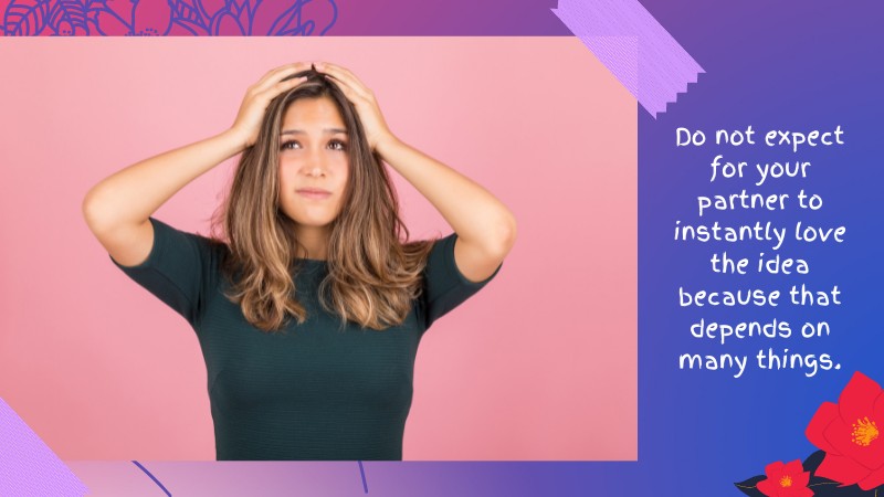 Do not expect your partner to love the idea because that depends on many things instantly.