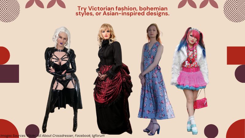 Try Victorian fashion, bohemian styles, or Asian-inspired designs. Incorporate elements from various sources to unlock your personal style.