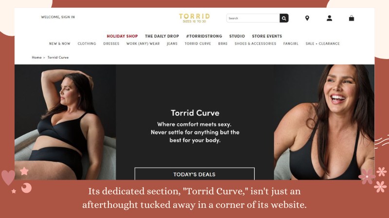 Its dedicated section, “Torrid Curve,” isn’t just an afterthought tucked away in a corner of its website. It’s a comprehensive collection that includes everything you might need.