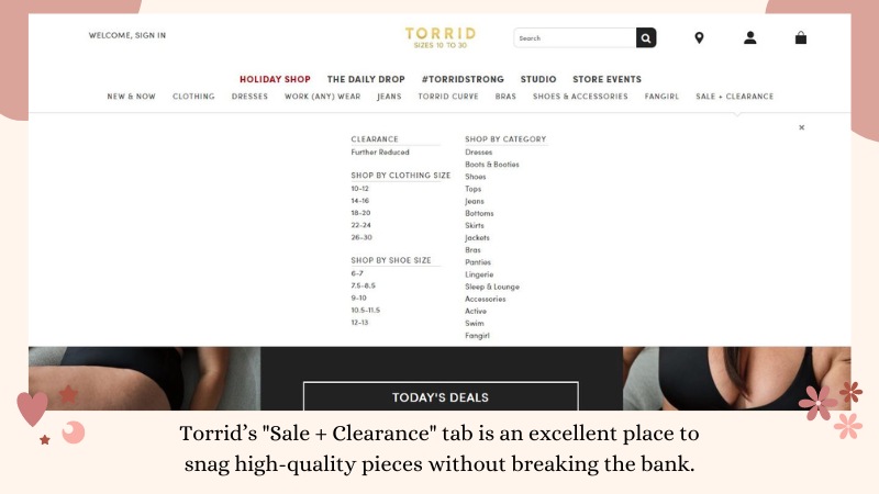 There’s more – who would turn down a good deal? Torrid’s “Sale + Clearance” tab is an excellent place to snag high-quality pieces without breaking the bank.