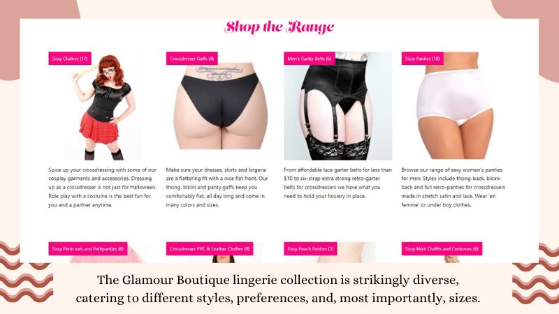 One of Glamour Boutique’s outstanding features is its “Crossdresser Starter Kits.” These kits are precisely what you need if you’re just starting your exploration.