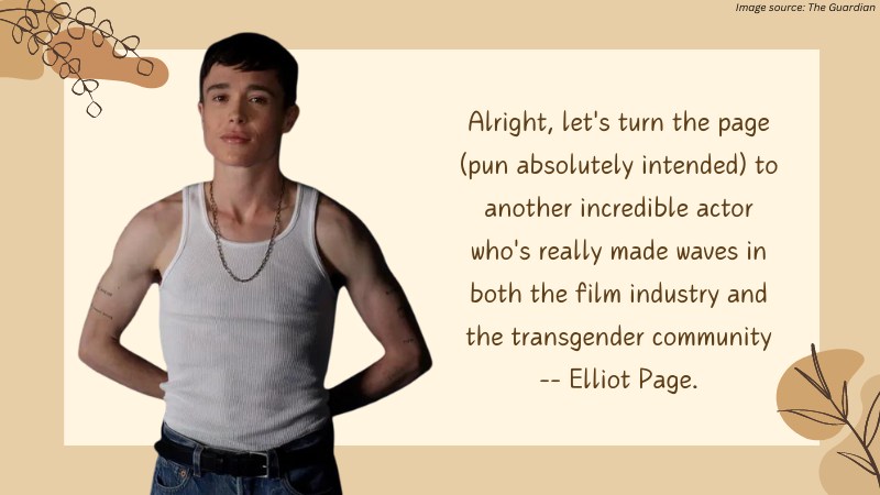 Alright, let’s turn the page (pun absolutely intended) to another incredible actor who’s really made waves in both the film industry and the transgender community — Elliot Page. Y’all remember him, right? The Oscar-nominated actor from Juno? Who wouldn’t? In 2020, Elliot kicked open the doors of the metaphorical closet and announced to the world that he’s transgender and non-binary.