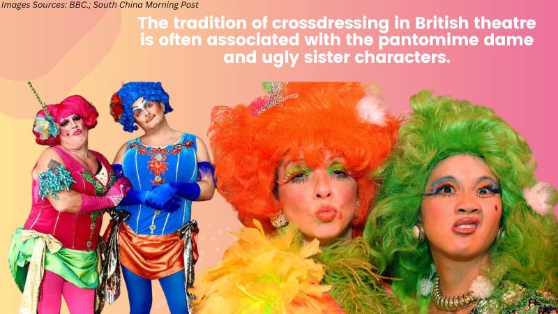 The tradition of crossdressing in British theatre is often associated with the pantomime dame and ugly sister characters.