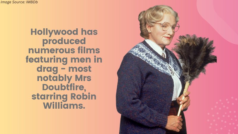 Since then, Hollywood has produced numerous films featuring men in drag – most notably Mrs Doubtfire, starring Robin Williams.