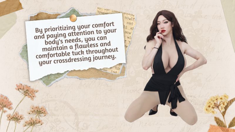 By prioritizing your comfort and paying attention to your body’s needs, you can maintain a flawless and comfortable tuck throughout your crossdressing journey.