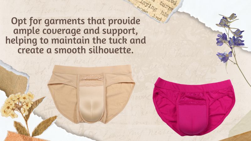 Opt for garments that provide ample coverage and support, helping to maintain the tuck and create a smooth silhouette.