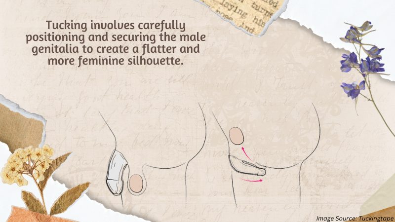Tucking involves carefully positioning and securing the male genitalia to create a flatter and more feminine silhouette.