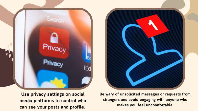 Be wary of unsolicited messages or requests from strangers and avoid engaging with anyone who makes you feel uncomfortable.