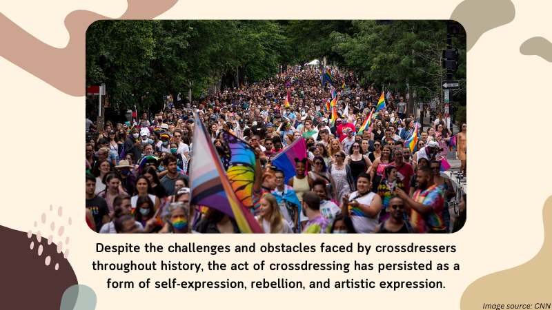 Despite the challenges and obstacles faced by crossdressers throughout history, the act of crossdressing has persisted as a form of self-expression, rebellion, and artistic expression. Today, crossdressing is becoming more mainstream and is often celebrated in popular culture, particularly in the world of drag performance.