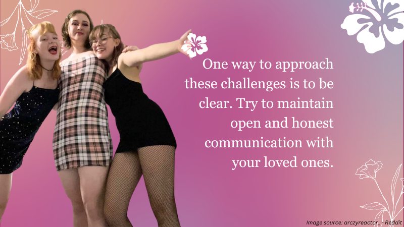 One way to approach these challenges is to be clear. Try to maintain open and honest communication with your loved ones. This means sharing your desires and feelings in a respectful and non-judgmental way. But you should do that while also listening to and validating their concerns. It’s important to create a safe space for open dialogue. But avoid making assumptions or jumping to conclusions. Sometimes things aren’t as bad as they look! A bit of dialogue can change a lot.
