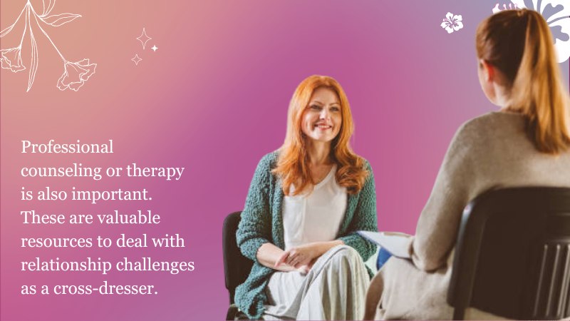 Professional counseling or therapy is also important. These are valuable resources for dealing with relationship challenges as a cross-dresser. A therapist can provide a neutral perspective. This may help you develop effective communication skills. And a better understanding of your partner will come with time. Keep all that in mind as you work through difficult emotions and situations.