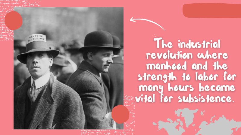 My best bet would be the Industrial Revolution, where manhood and the strength to labor for many hours became vital for subsistence.