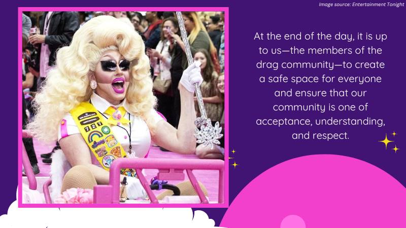 At the end of the day, it is up to us—the members of the drag community—to create a safe space for everyone and ensure that our community is one of acceptance, understanding, and respect.