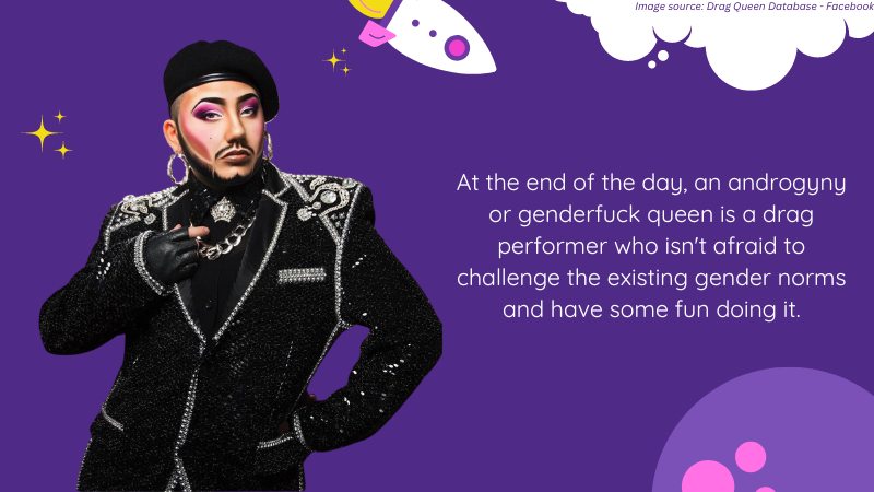 At the end of the day, an androgyny or genderfuck queen is a drag performer who isn’t afraid to challenge the existing gender norms and have some fun doing it.