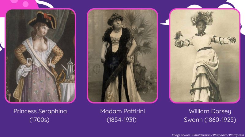 Princess Seraphina (1700s): Princess Seraphina was a figure of androgyny whose performances were so convincing that some people even believed she was a real princess. She was known for her elaborate costumes, tantalizing looks, and freedom-loving spirit that went against the gender norms of the time.