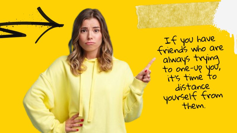 If you have friends who are always trying to one-up you, it’s time to distance yourself from them. Find people who are comfortable in their skin and don’t need to compare themselves to others constantly. You deserve better!