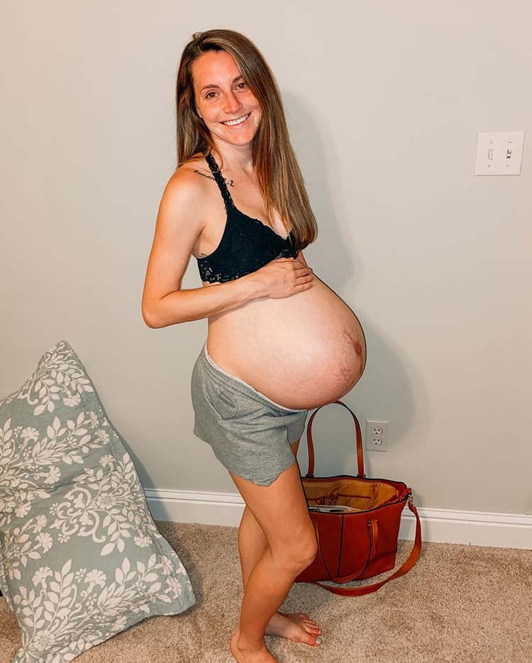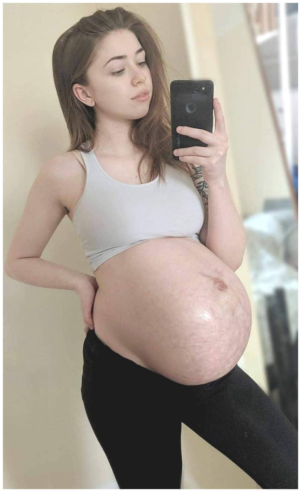 A thin body with a big belly and beautiful stretch marks