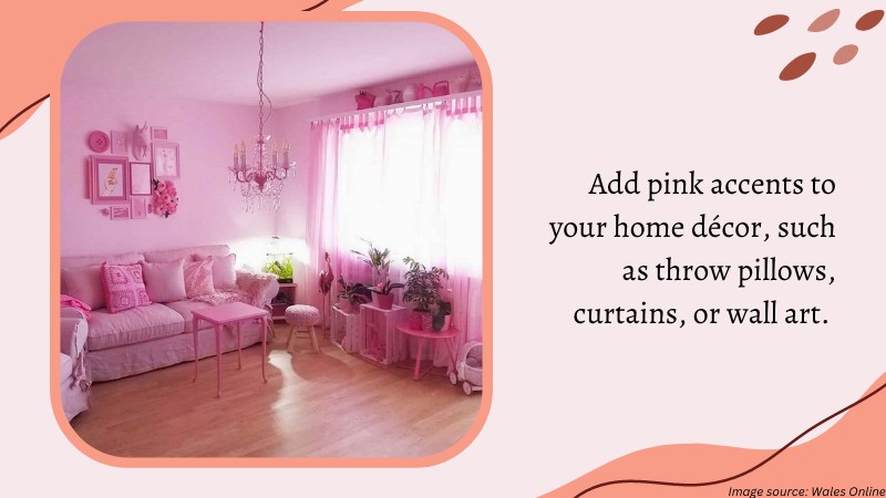 Home décor: Add pink accents to your home décor, such as throw pillows, curtains, or wall art. This can help create a more welcoming and positive atmosphere in your living space.