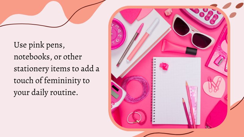 Stationery: Use pink pens, notebooks, or other stationery items to add a touch of femininity to your daily routine.