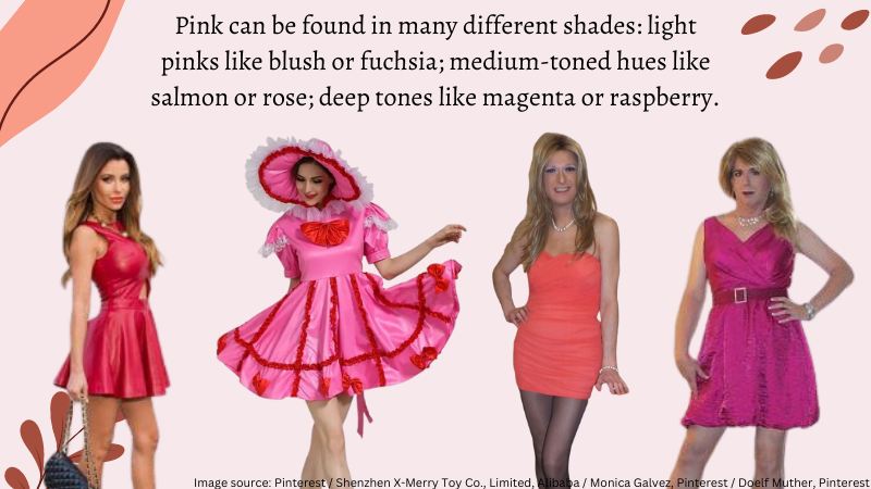 Pink can be found in many different shades: light pinks like blush or fuchsia; medium-toned hues like salmon or rose; deep tones like magenta or raspberry; even pastel versions like baby blue or mint green (though these are less common). No matter which shades you choose, wearing pink will help you feel empowered as a sissy because it reminds others that you’re proud of who you are!