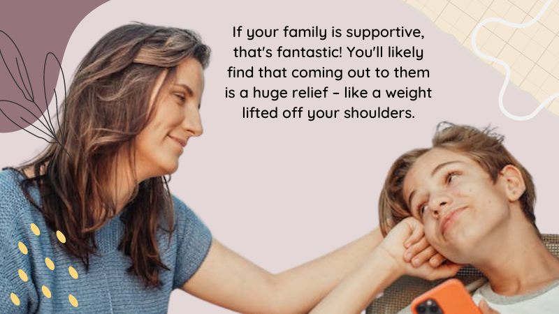 If your family is supportive, that’s fantastic! You’ll likely find that coming out to them is a huge relief – like a weight lifted off your shoulders. You may even be surprised by how much unconditional love and support your family has for you.