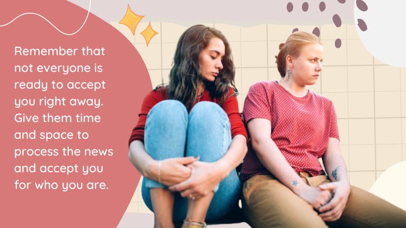 Remember that not everyone is ready to accept you right away. Give them time and space to process the news and accept you for who you are.