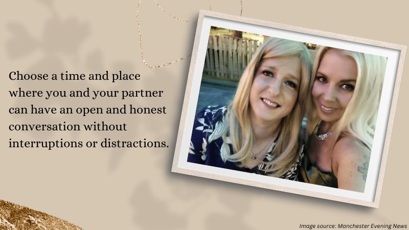Choose a time and place where you and your partner can have an open and honest conversation without interruptions or distractions.