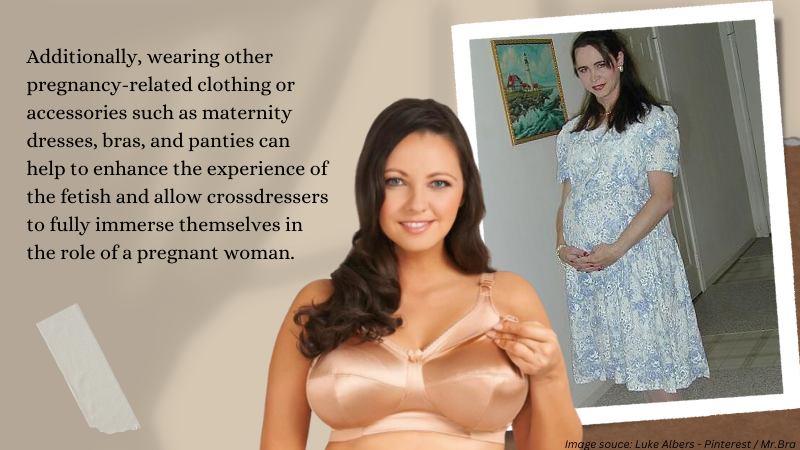 This can allow crossdressers to experience a sense of physical femininity and motherhood that may be difficult to achieve otherwise. Additionally, wearing other pregnancy-related clothing or accessories such as maternity dresses, bras, and panties can help to enhance the experience of the fetish and allow crossdressers to fully immerse themselves in the role of a pregnant woman. It’s important to note that engaging in pregnancy fetishism, including the use of prosthetic bellies or other accessories, should always be done safely and consensually to ensure that both partners are comfortable and fulfilled.
