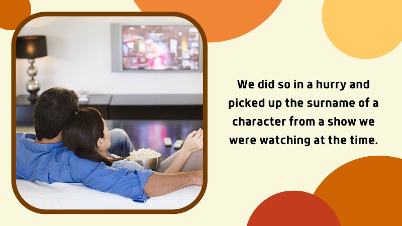 We did so in a hurry and picked up the surname of a character from a show we were watching at the time.