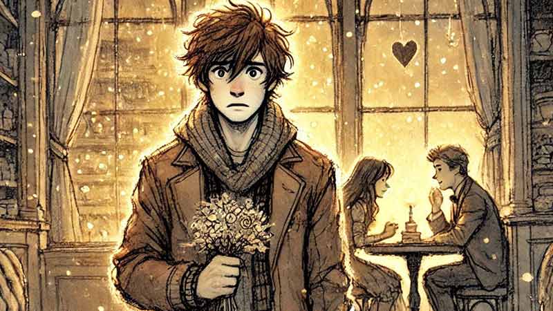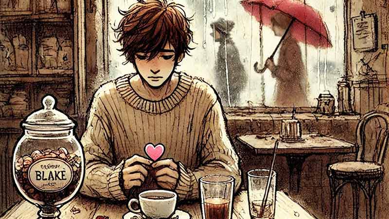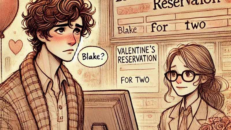 Flipping the small paper heart around in his hands, Blake moped. This was another unfortunate Valentine’s Day by himself. He had walked in on her cheating on him with another man and had dumped her. The only solace was the tin of chocolate candies he had just worked through.