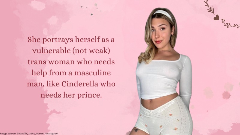 She portrays herself as a vulnerable (not weak) trans woman who needs help from a masculine man,